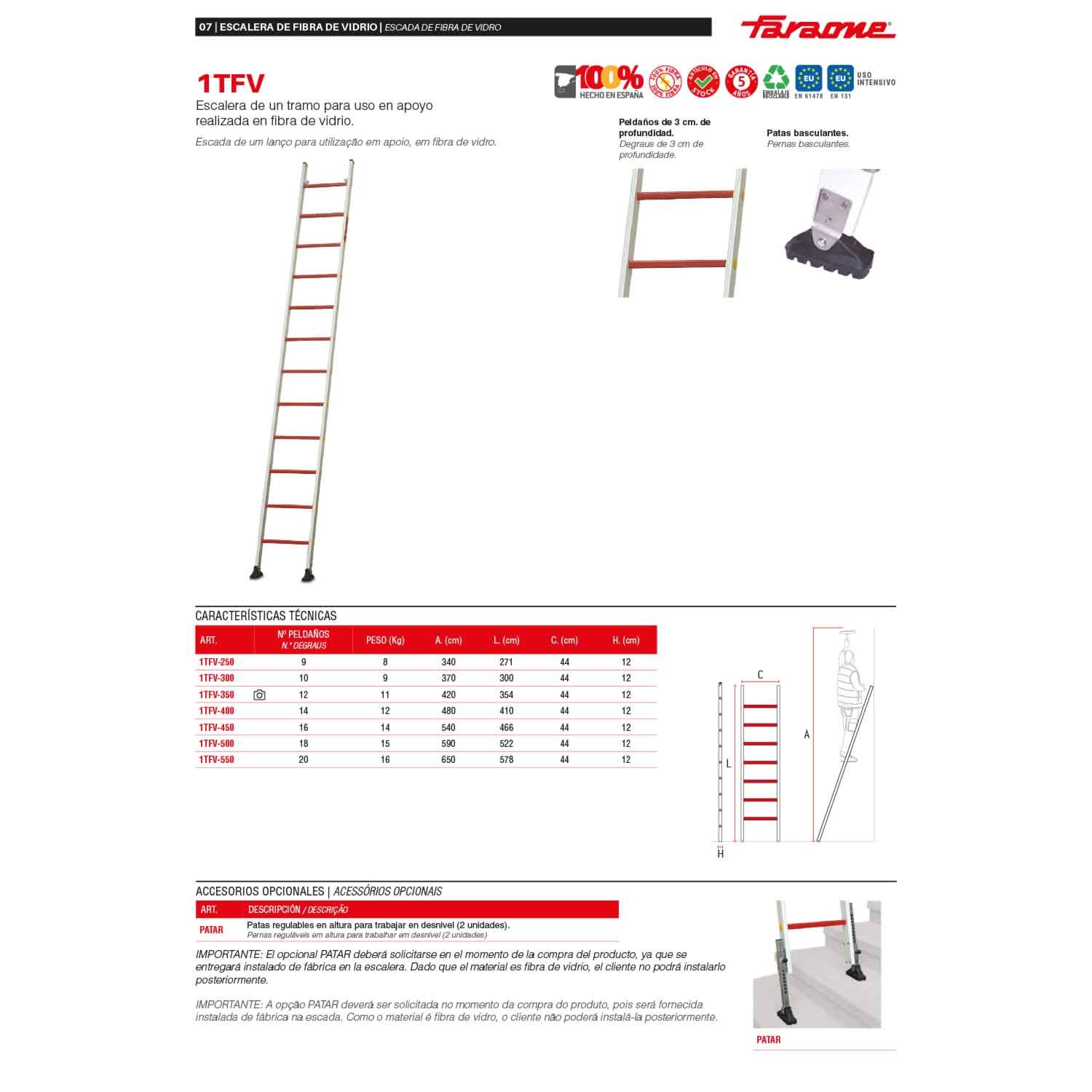 L'échelle 1TFV est composée de sections en fibre de verre et équipée de pieds à bascule pour faciliter son déplacement ; idéale pour les travaux présentant des risques électriques.