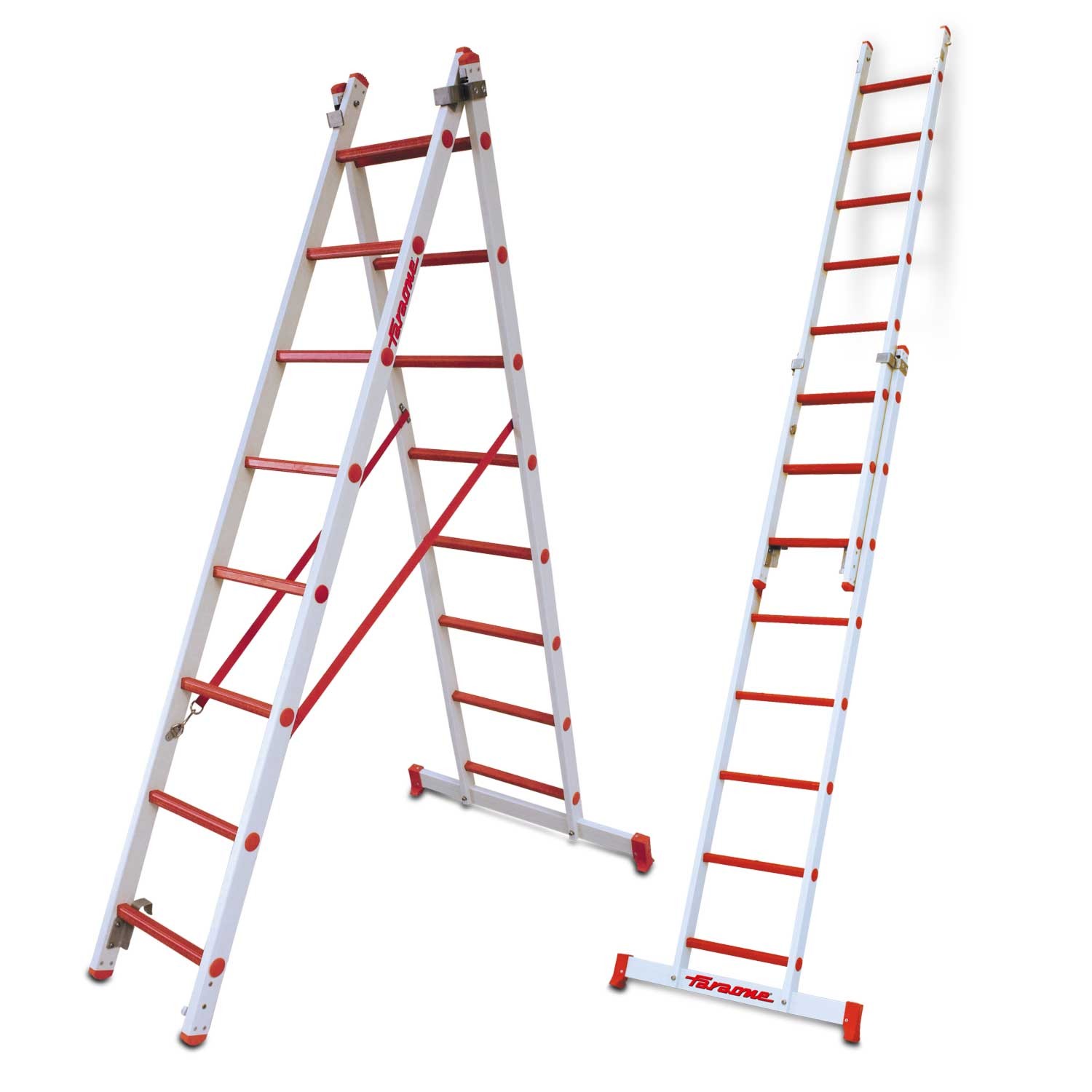 Le modèle peut être utilisé dans 2 positions différentes : déployée (les 2 sections sont accouplées) et autoportante (2 sections en position escabeau).