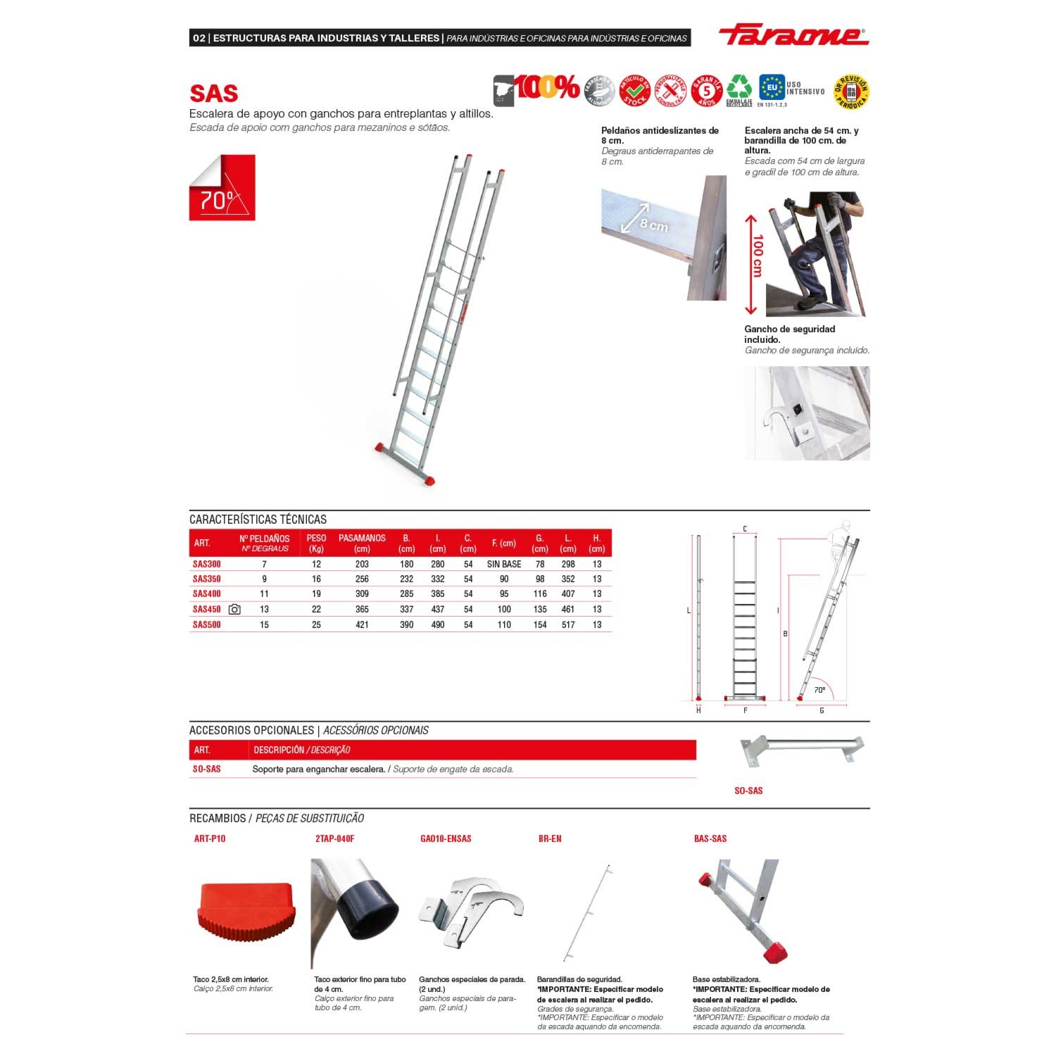 Rechange de mains courantes confortables et sûres pour les échelles à une section. Modèles EN1100 et SAS.