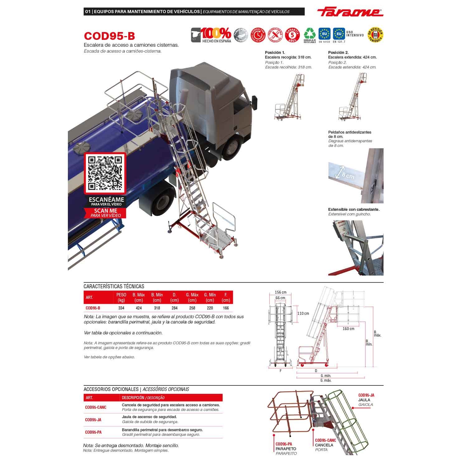 La COD95-B est un équipement sûr et pratique qui permet au travailleur d'accéder au toit de n'importe quel véhicule, en étant protégé par un garde-corps de 110 cm de hauteur.