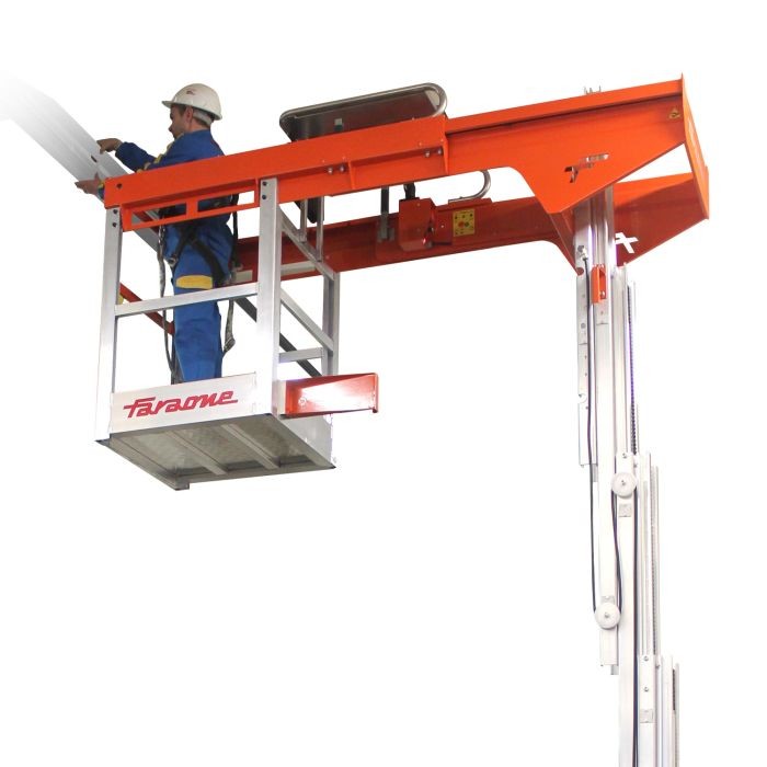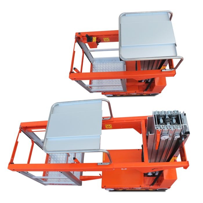 Le panier s'étend manuellement jusqu'à 115 cm, ce qui la rend idéale pour les travaux de maintenance et de réparation dans des environnements industriels, sur des machines, à l'intérieur de magasins ou de centres commerciaux et dans des lieux où il y a peu d'obstacles à surmonter.
