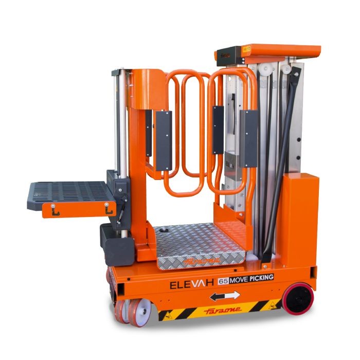 Conçue pour les activités de collecte, de stockage, d’organisation des entrepôts, des étagères et de la logistique. La Elevah 65 Move Picking est une plateforme de collecte qui permet d'atteindre une hauteur maximale de 6,5 m.