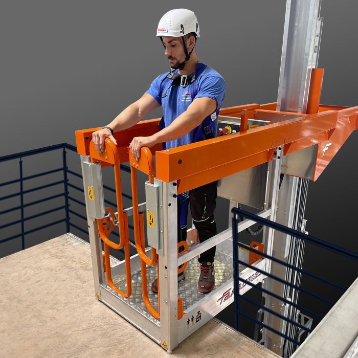 Plataforme aérienne pour décharger en hauteur en toute sécurité.