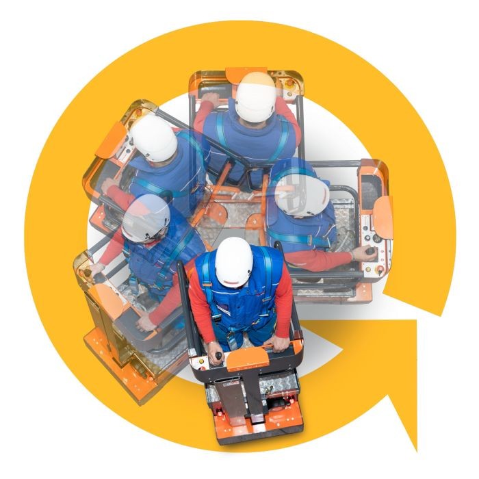 Le panier offre un accès confortable et sécurisé, permettant à l'opérateur de travailler en hauteur, protégé de tous les côtés, minimisant ainsi les risques de blessures.