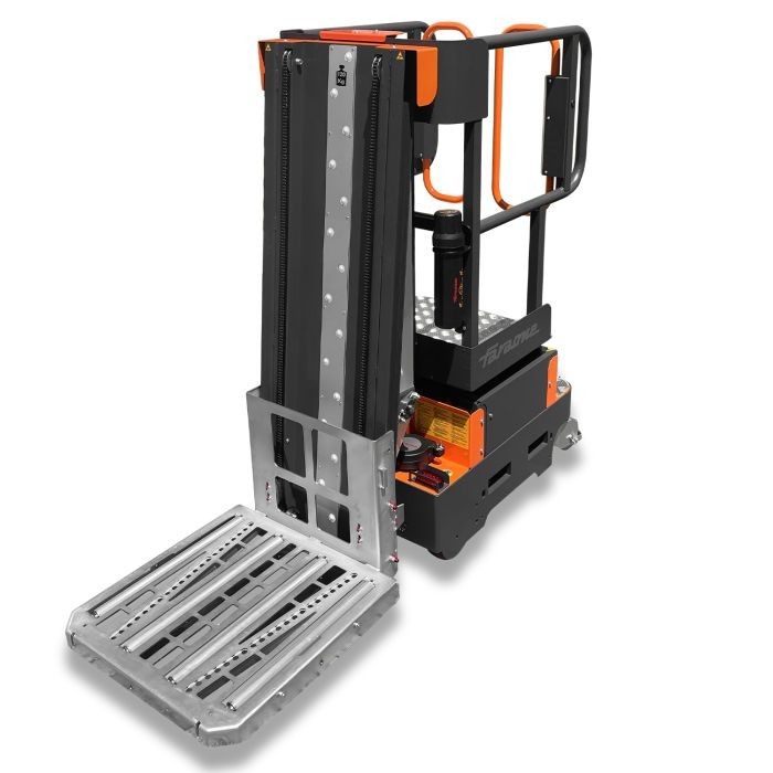 Compacte, avec des dimensions de 78×196 cm, elle atteint une hauteur maximale de travail de 6 mètres avec une capacité de charge allant jusqu'à 120 kg. Grâce à ses dimensions, elle est parfaite pour les espaces réduits et les environnements nécessitant une optimisation maximale de l'espace.