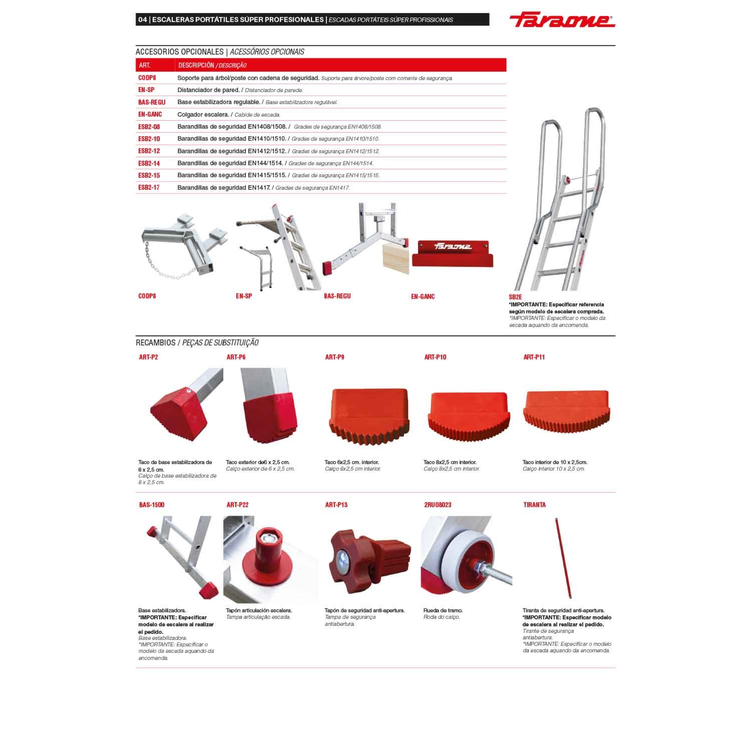 Attention : Veuillez noter que la réglementation interdit de travailler en utilisant les trois dernières marches de l'échelle. C'est pourquoi ces marches ont une profondeur de 3 cm, servant de garde-corps de sécurité pour l'utilisateur.