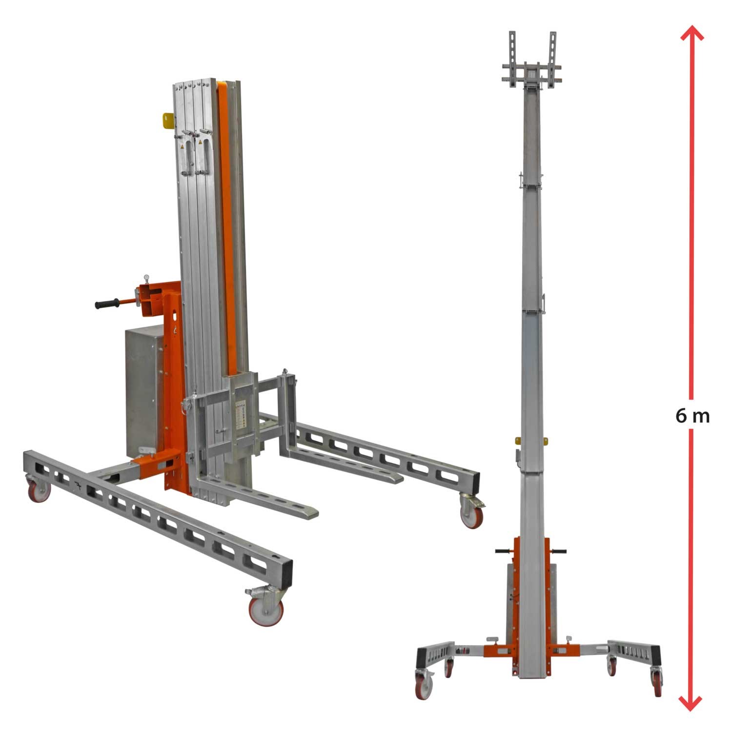 Élévateur de matériel, capacité maximale de 300 kg, hauteur maximale 6,3 m, réglage électrique :