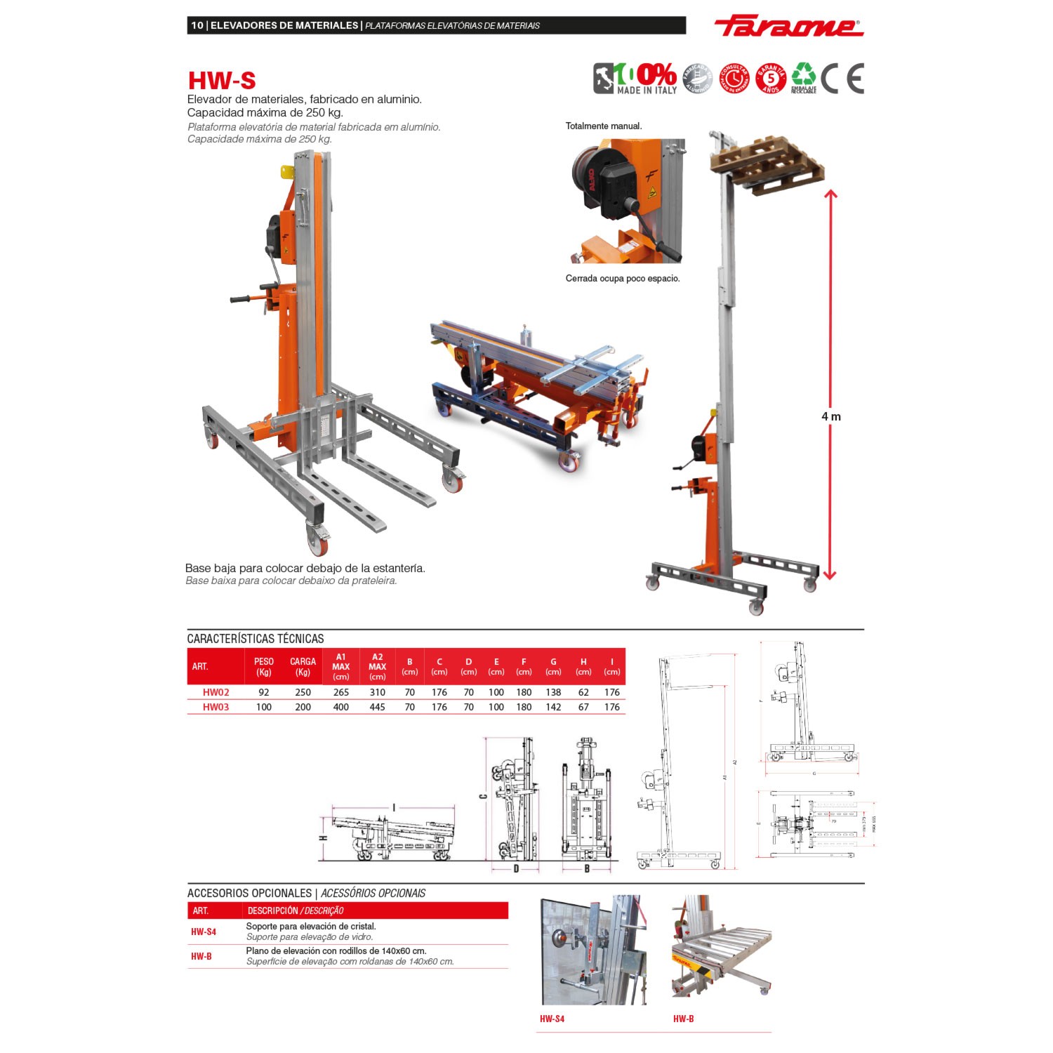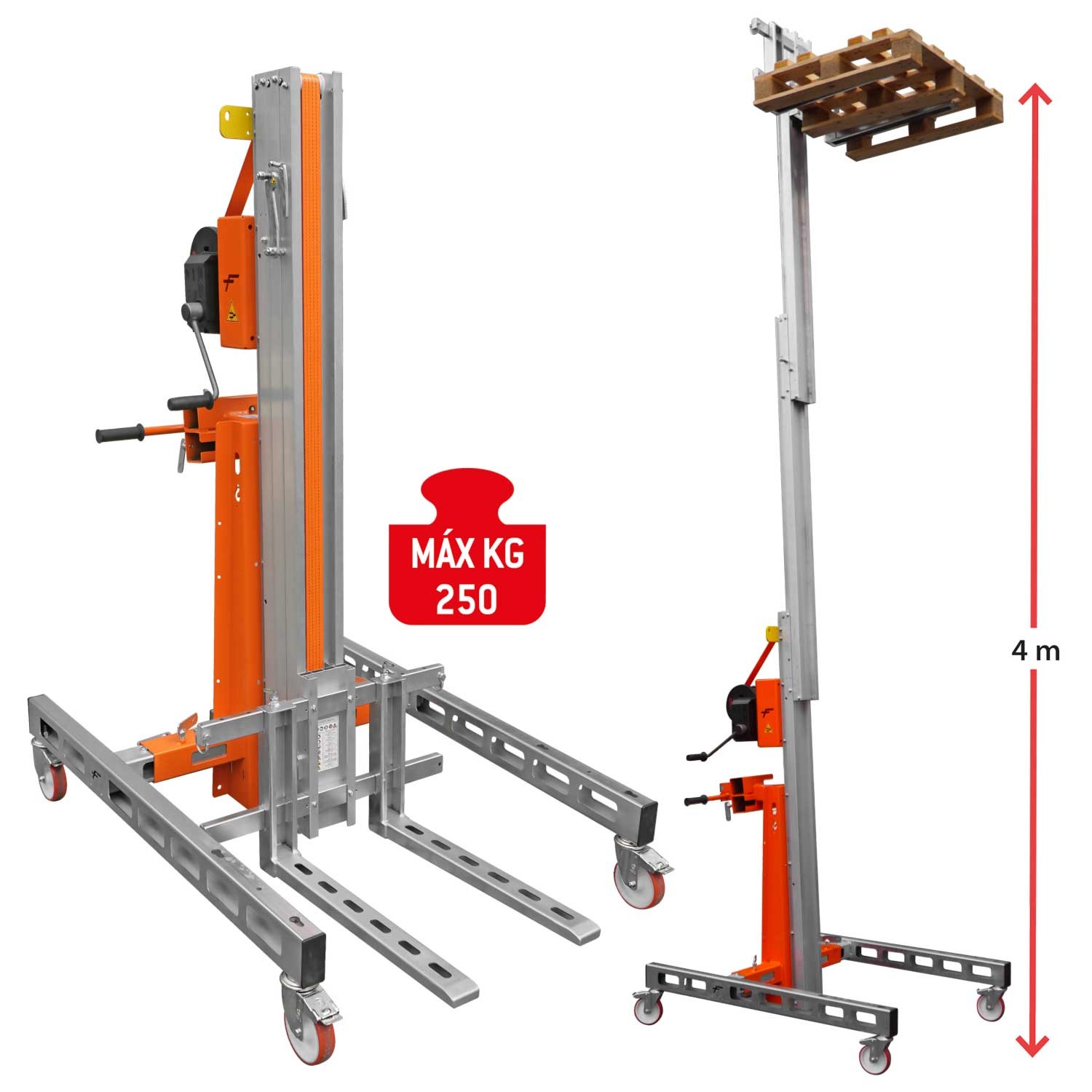 HW-S | Élévateur de matériaux en aluminium, capacité maximale 250 kg.