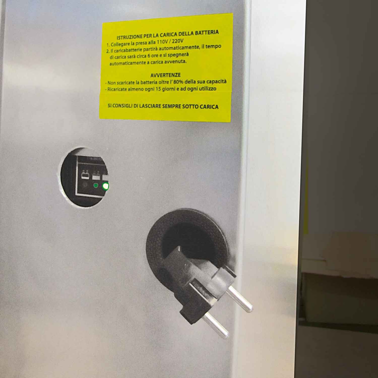 Équipée de roues avant, d'une base stabilisatrice, et d'un système breveté de déplacement et d'ancrage SICUR-STOP. Alimentation par batterie rechargeable pour la surface de travail.