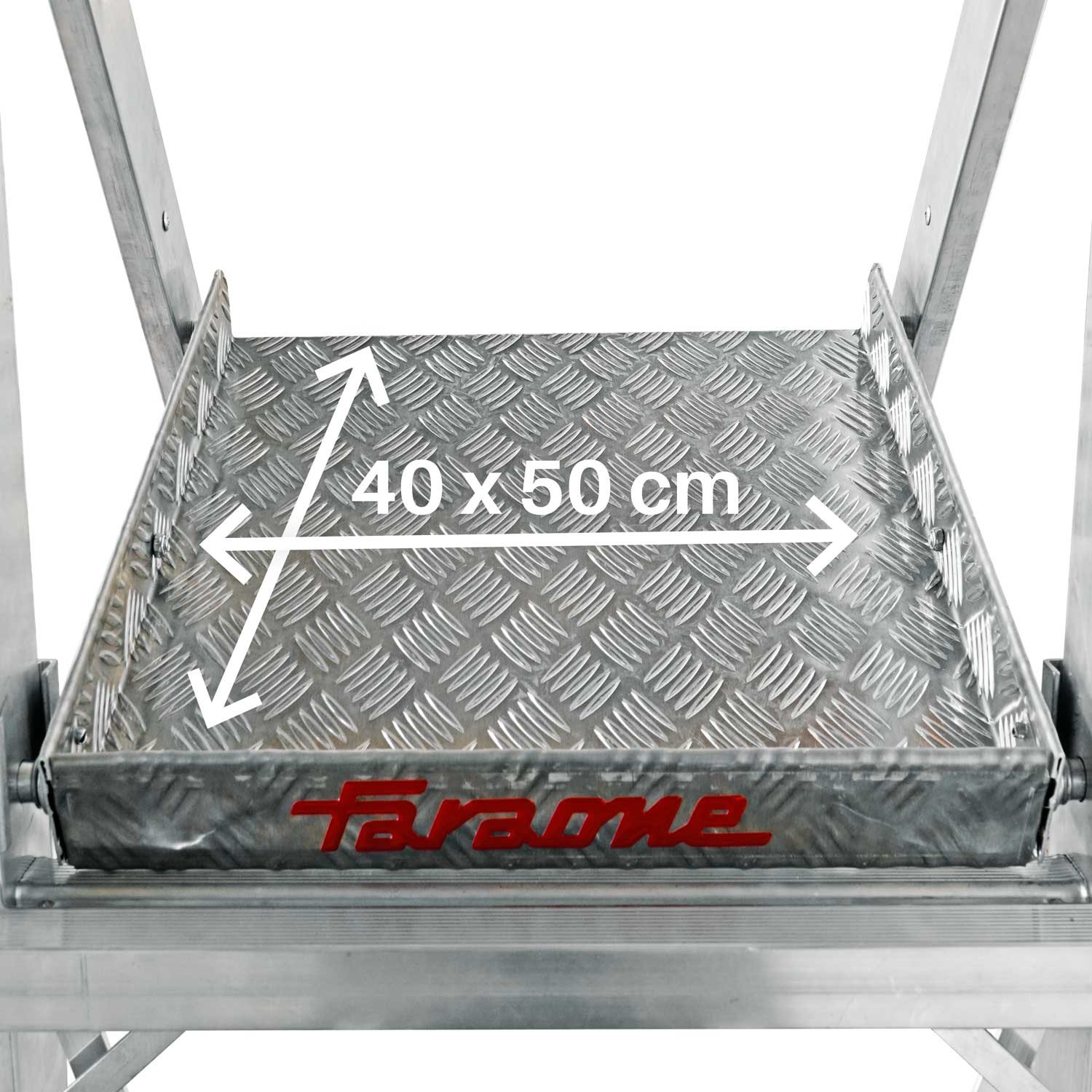 Échelle professionnelle avec large plateforme, hauteur réglable et système de pliage sécurisé. Compacte, robuste et facile à transporter.