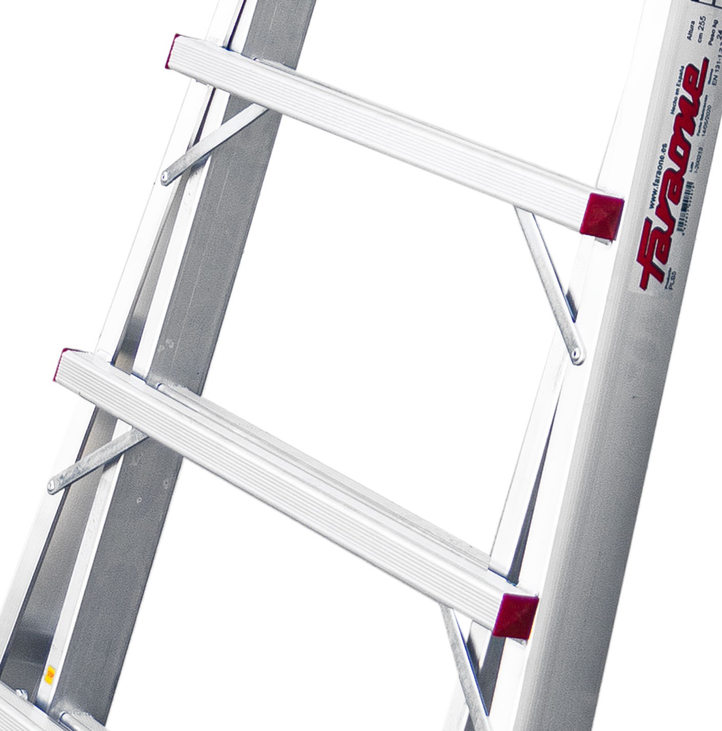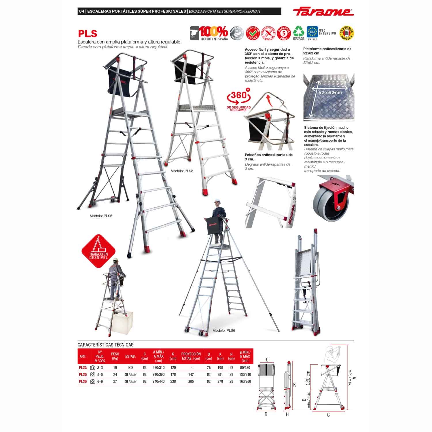La PLS est une échelle généralement utilisée sur les chantiers par les professionnels qui souhaitent travailler avec une échelle légère, facile à transporter et sûre. De plus, elle dispose de deux stabilisateurs rétractables qui garantissent la sécurité du travailleur.