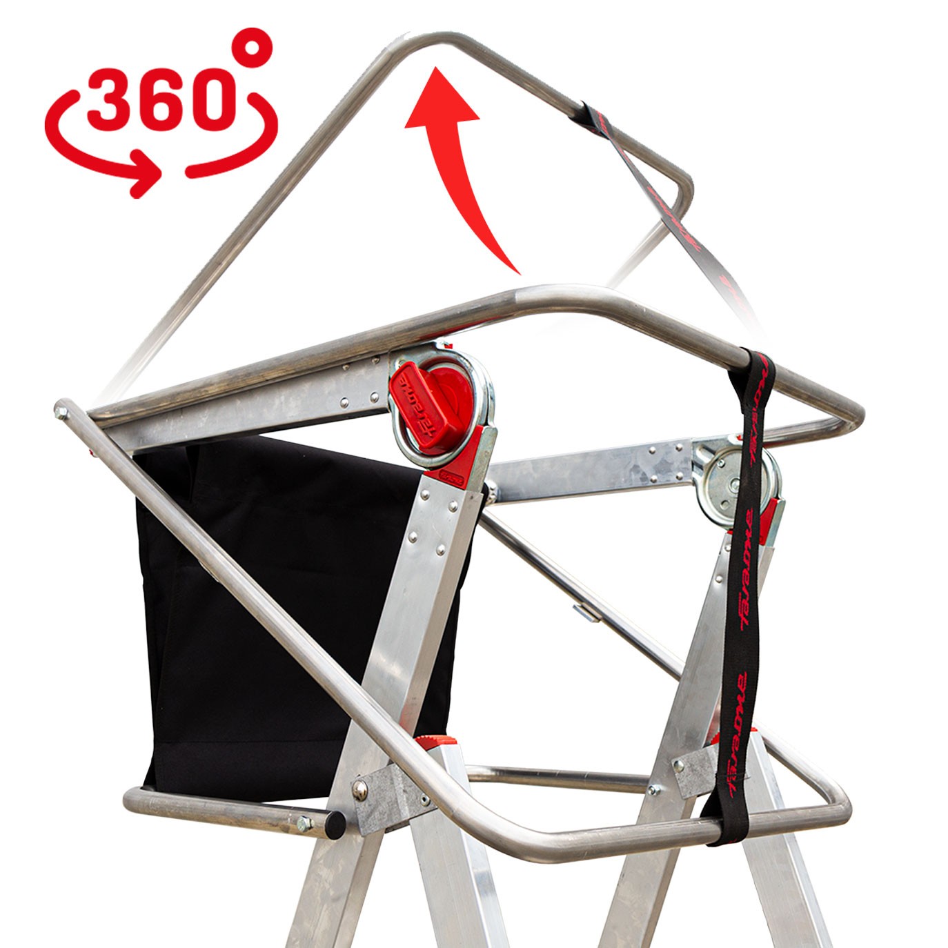 Le PLS est une échelle pliante, réglable en hauteur, dotée de doubles roues et d'une vaste surface de travail antidérapante de 52x62 cm offrant un accès par une échelle à marches antidérapantes de 3 cm de profondeur.