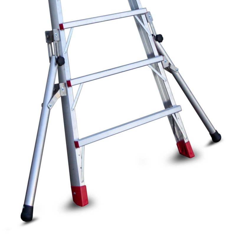 Comme elle est réglable en hauteur, l'échelle PLS peut également être utilisée sur des sols qui ne sont pas parfaitement nivelés, tels que des trottoirs ou des marches d'escalier.
