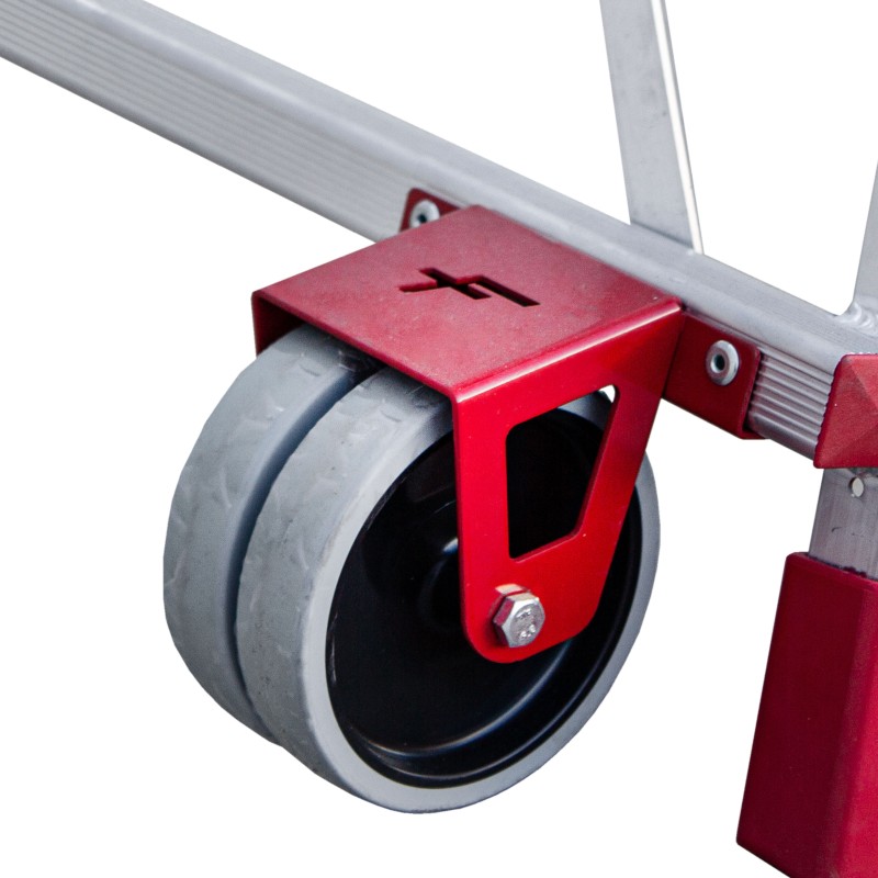 L'échelle peut être déplacée grâce aux deux roues de 8 cm de diamètre installées à l'arrière.