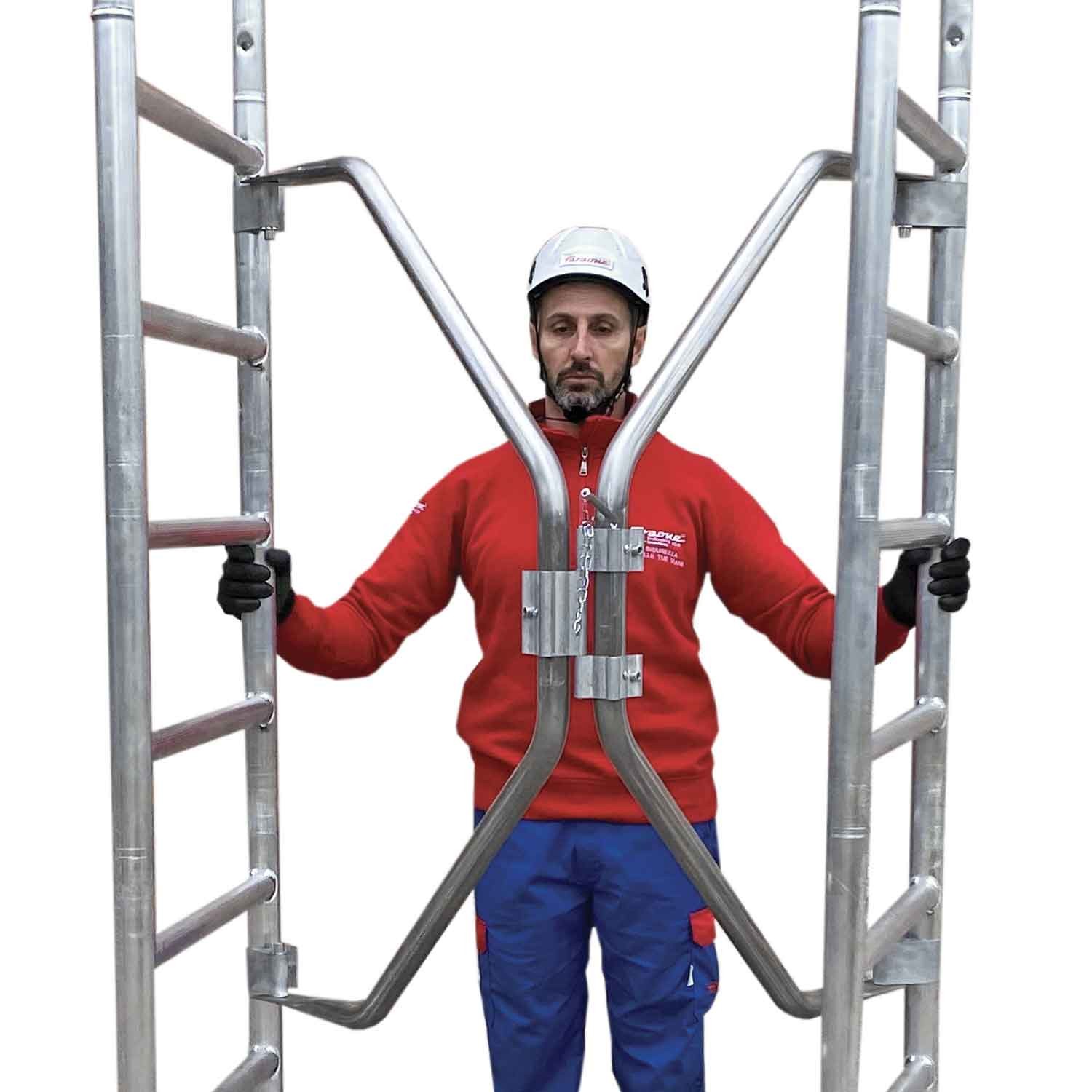 La estabilidad se ve reforzada gracias a las bases estabilizadoras laterales con tapones de alta adherencia, ideales para terrenos irregulares. El sistema modular permite un montaje sencillo y rápido, permitiendo configurar el andamio a la altura de trabajo deseada en poco tiempo.