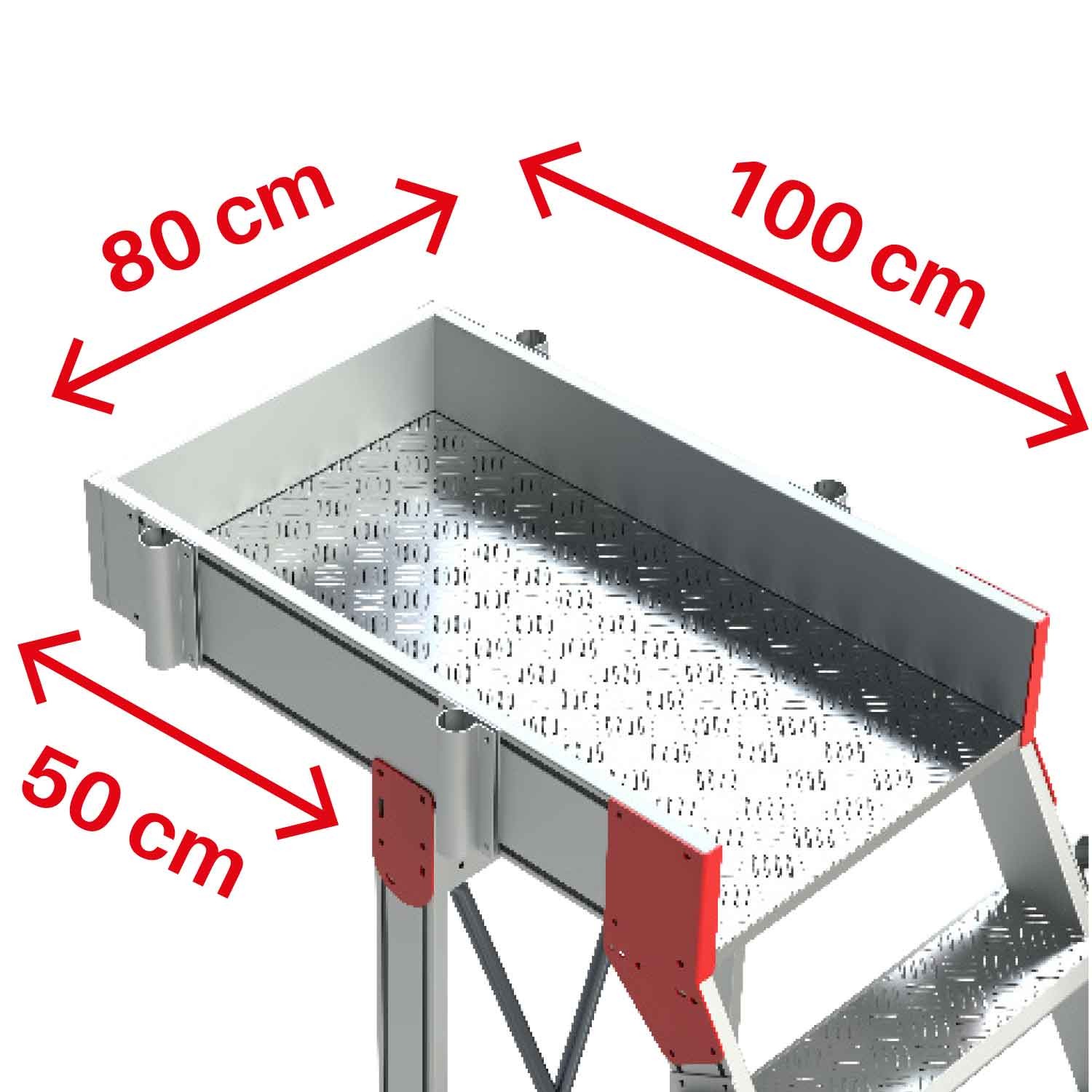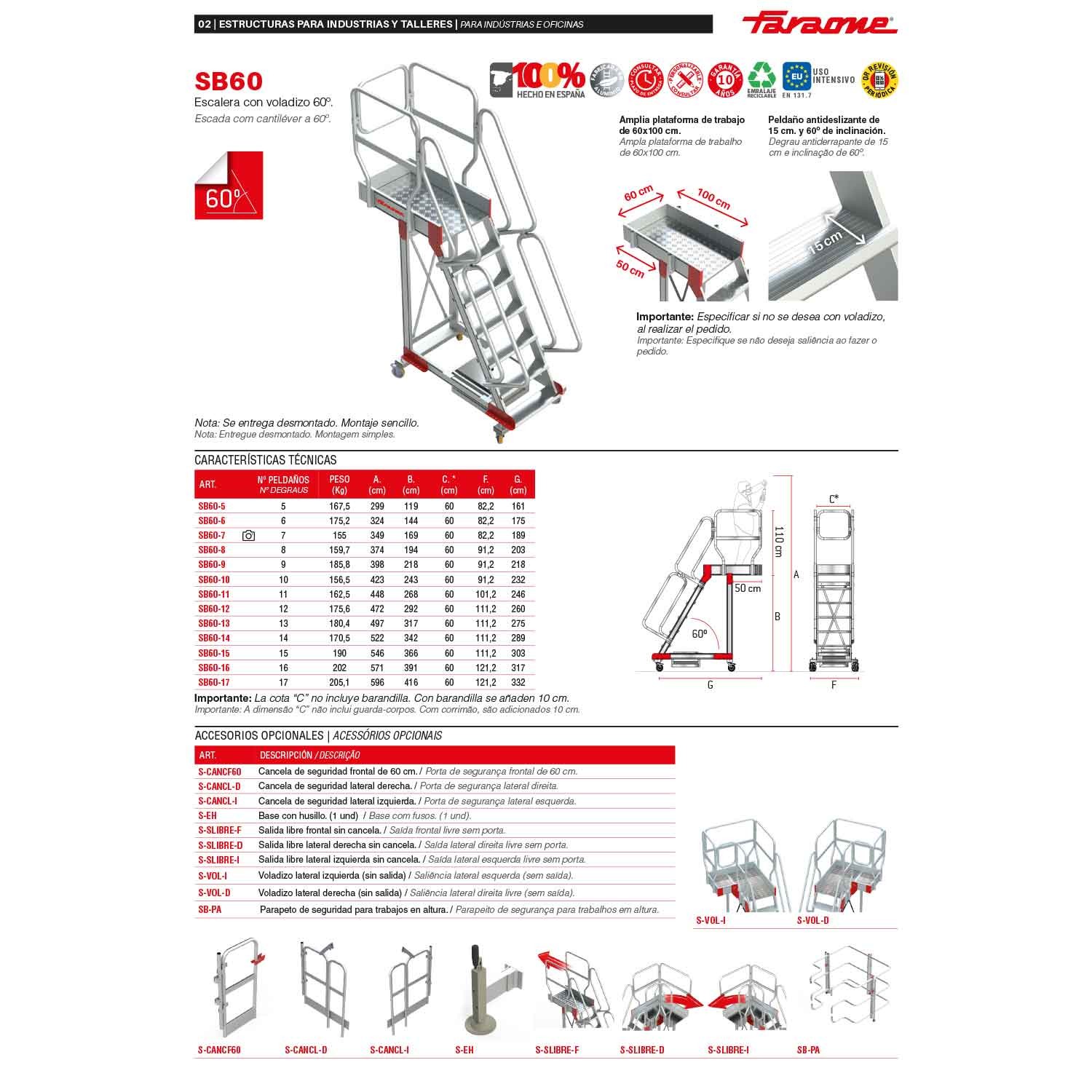 L'escalier SB60 est conçu pour travailler en hauteur dans des endroits où des obstacles se trouvent au sol, c'est pourquoi il est fabriqué avec des porte-à-faux de différentes longueurs, jusqu'à un maximum de 50 cm.