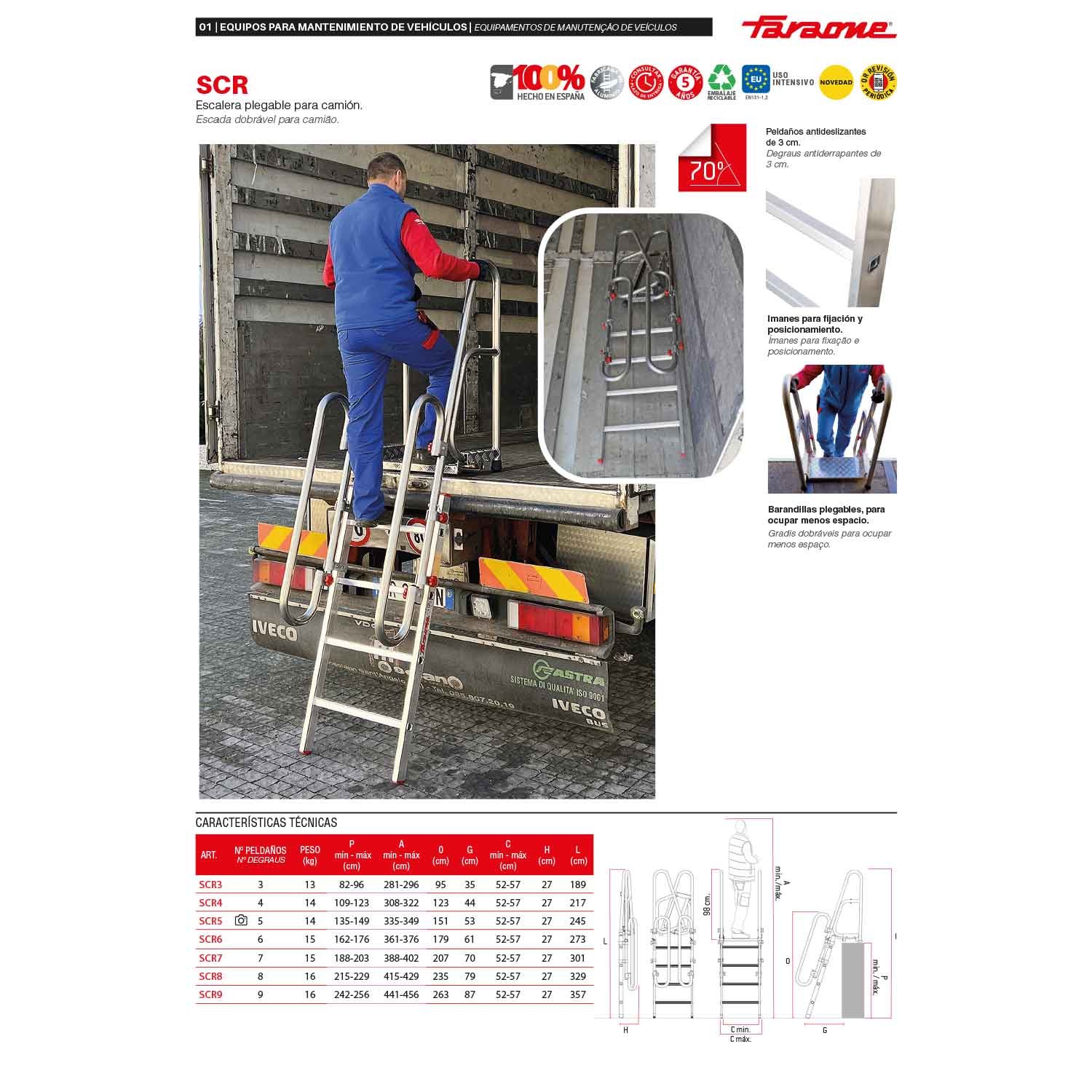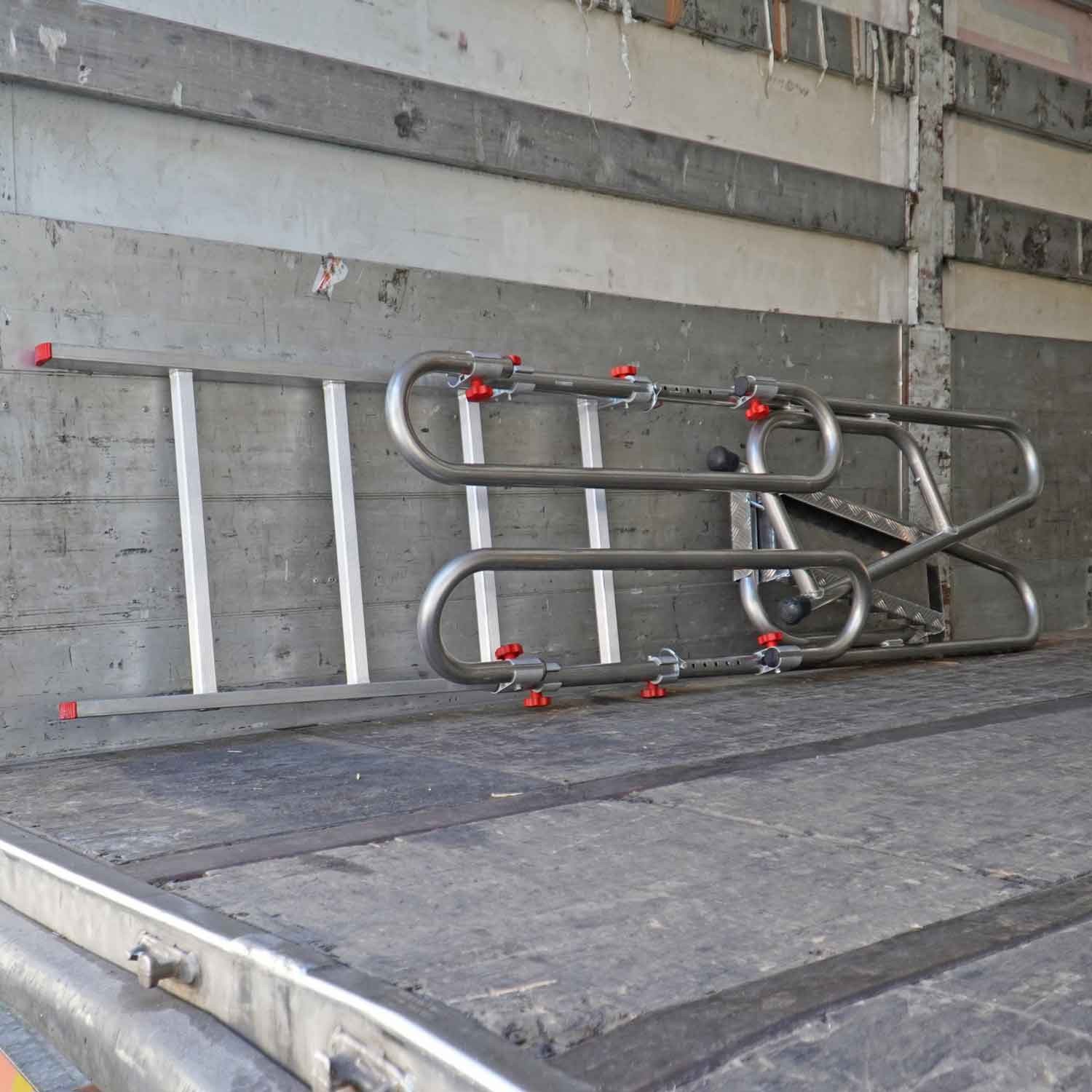 Nouvelle échelle d'accès aux camions qui facilite l'accès à la zone de chargement et de déchargement des camions en toute sécurité grâce aux éléments suivants :