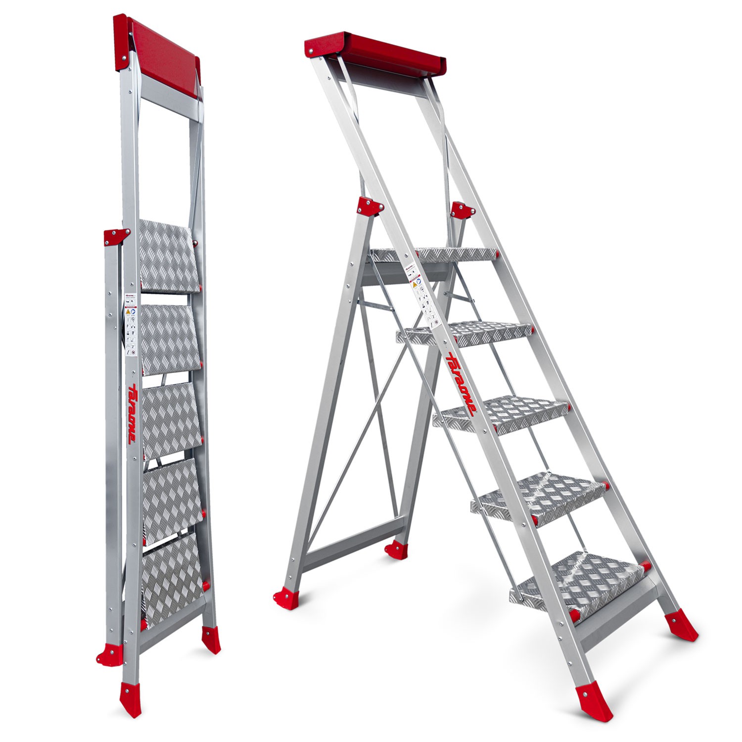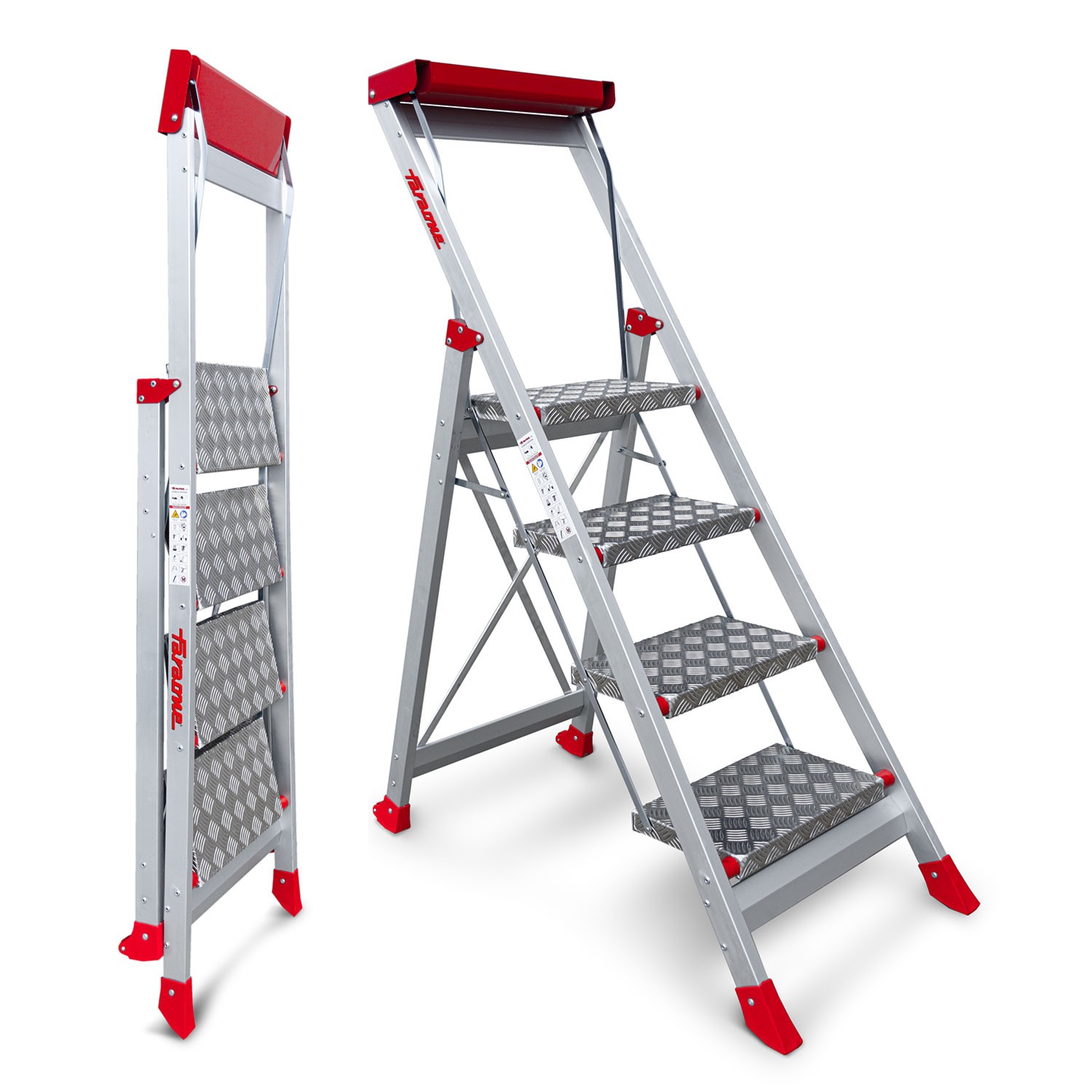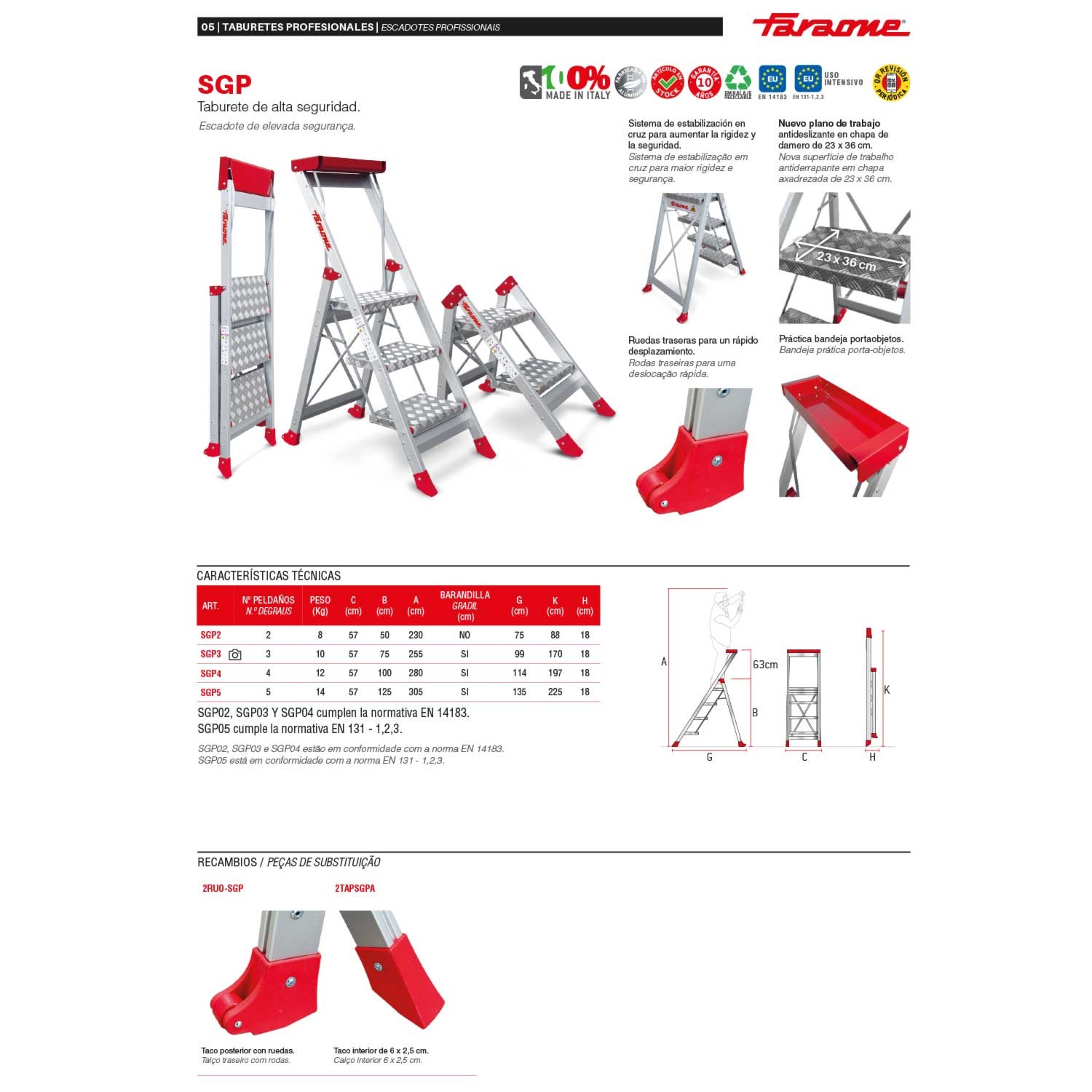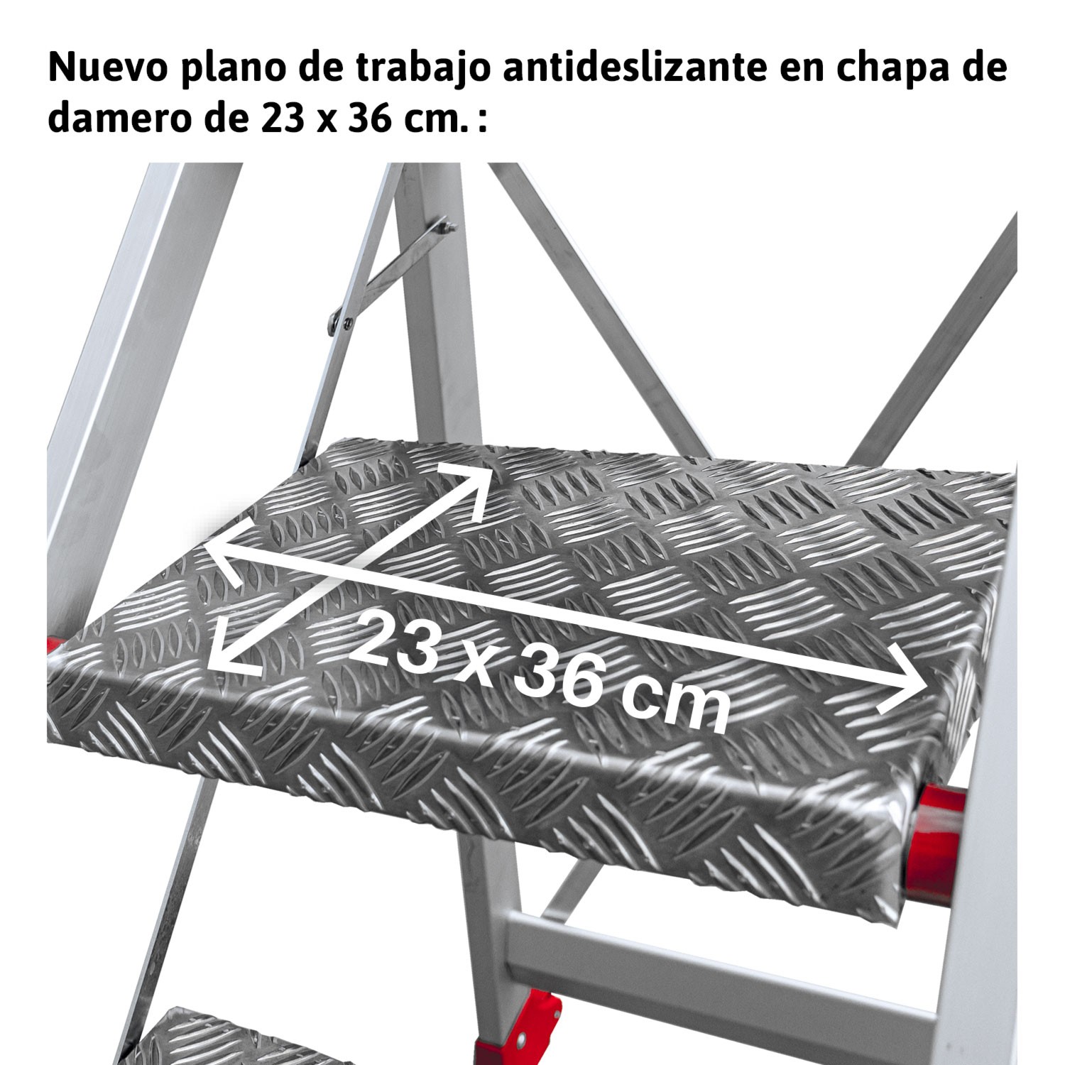 Le modèle SGP est un marchepied en aluminium avec une surface de travail en damier, et des marches confortables et sûres de 23x36 cm.