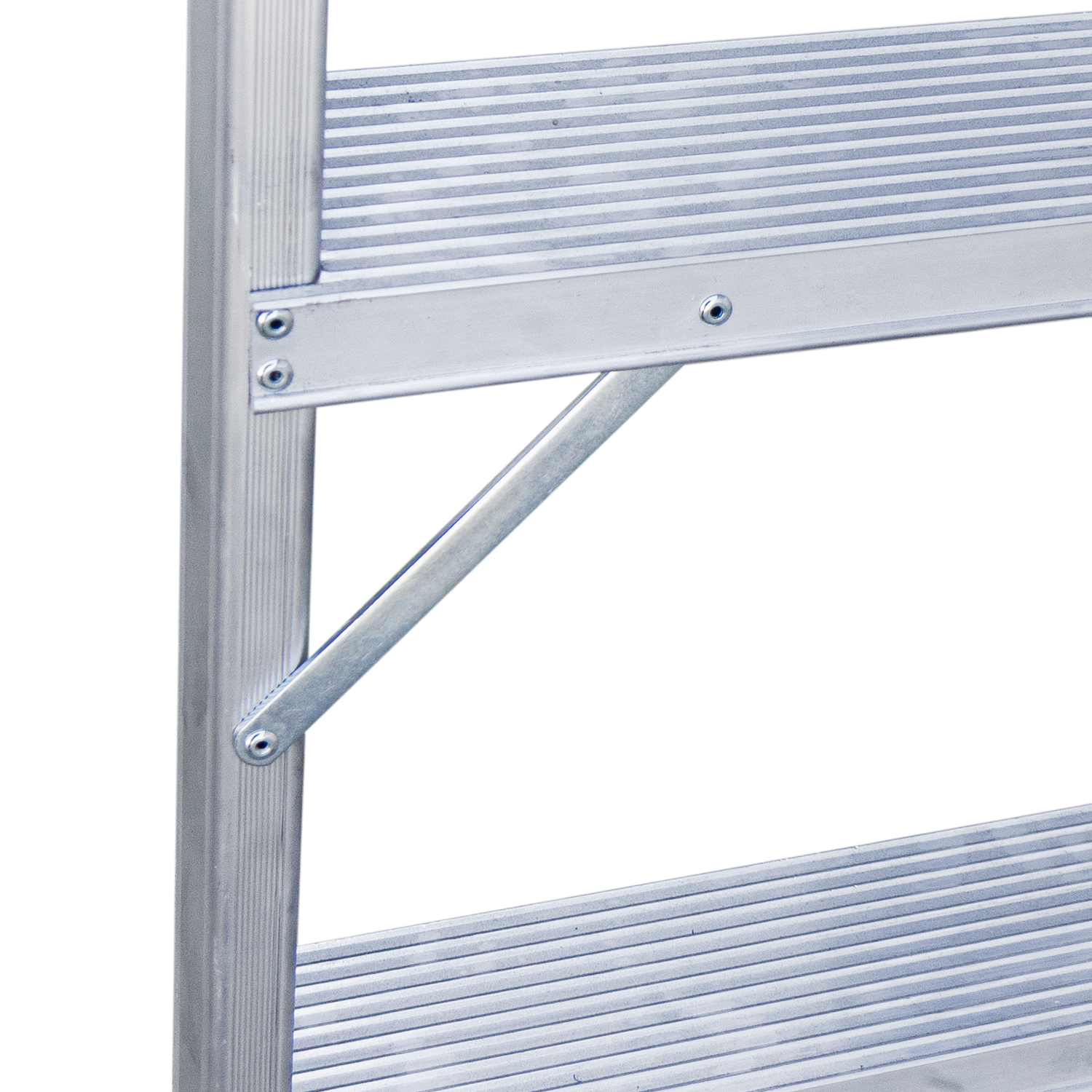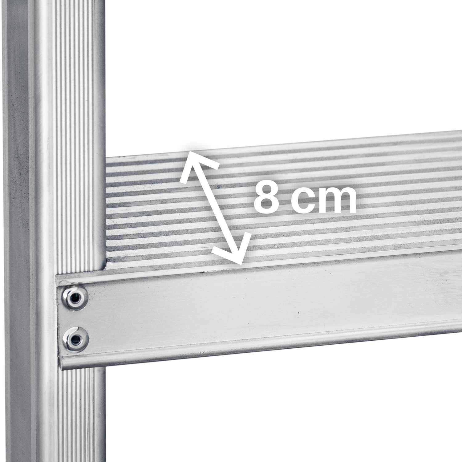 L'échelle T600 est conçue spécialement pour travailler sur les sols sablonneux ou irréguliers, avec des marches antidérapantes de 8 cm de profondeur et des patins articulés spéciaux disponibles en option pour une meilleure stabilité sur les sols en terre.