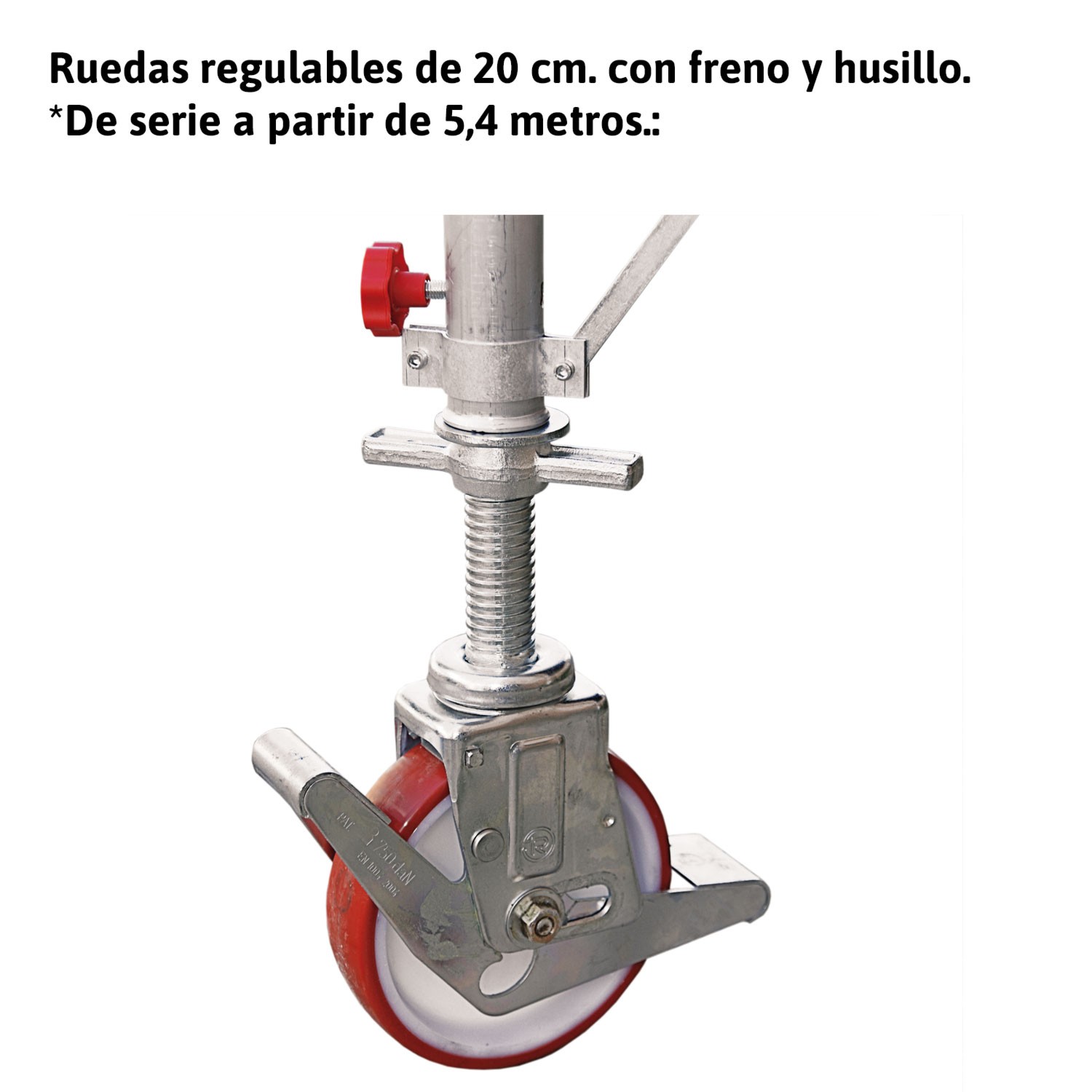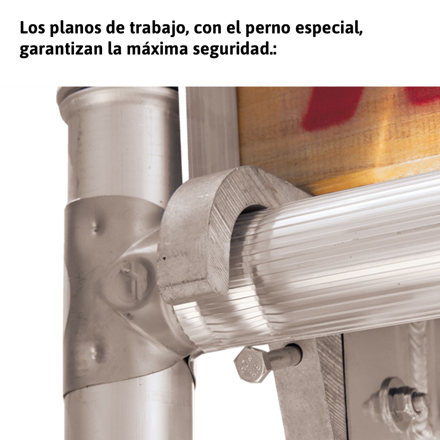 Plates-formes de travail avec une structure en aluminium à haute résistance et de grands crochets d'appui en aluminium permettant de résister aux chocs accidentels. Plinthe en aluminium et panneau de contreplaqué avec traitement phénolique pour la résistance à l'eau.