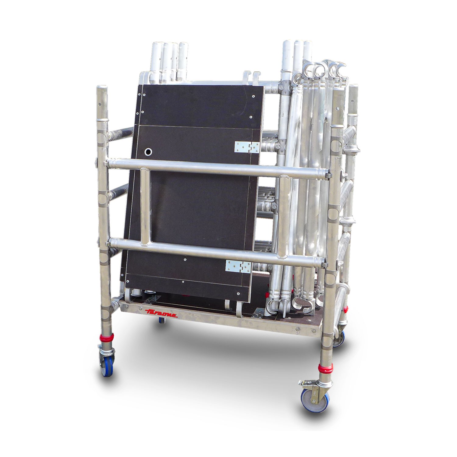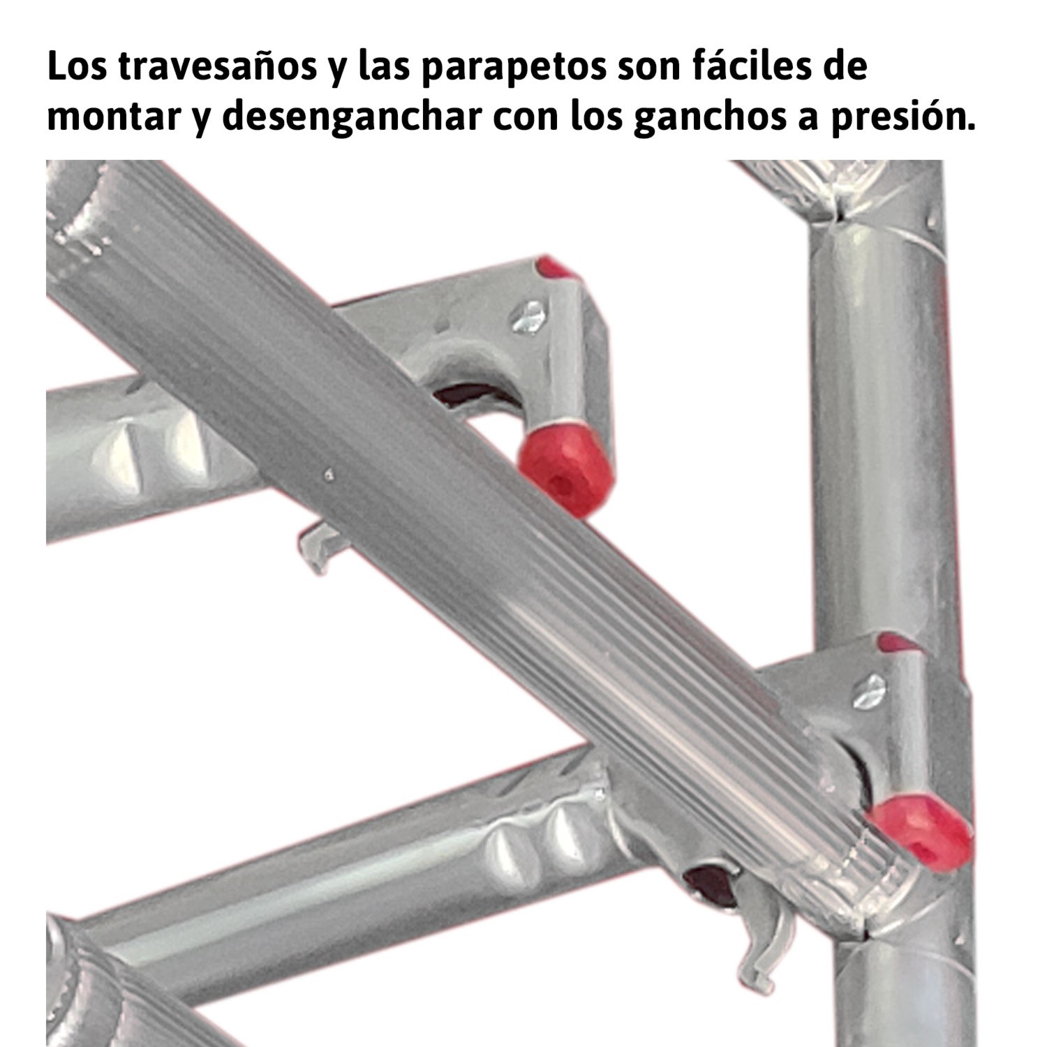 Plates-formes de travail fabriquées avec une structure en aluminium à haute résistance et de grands crochets d'appui en aluminium permettant de résister aux chocs accidentels.